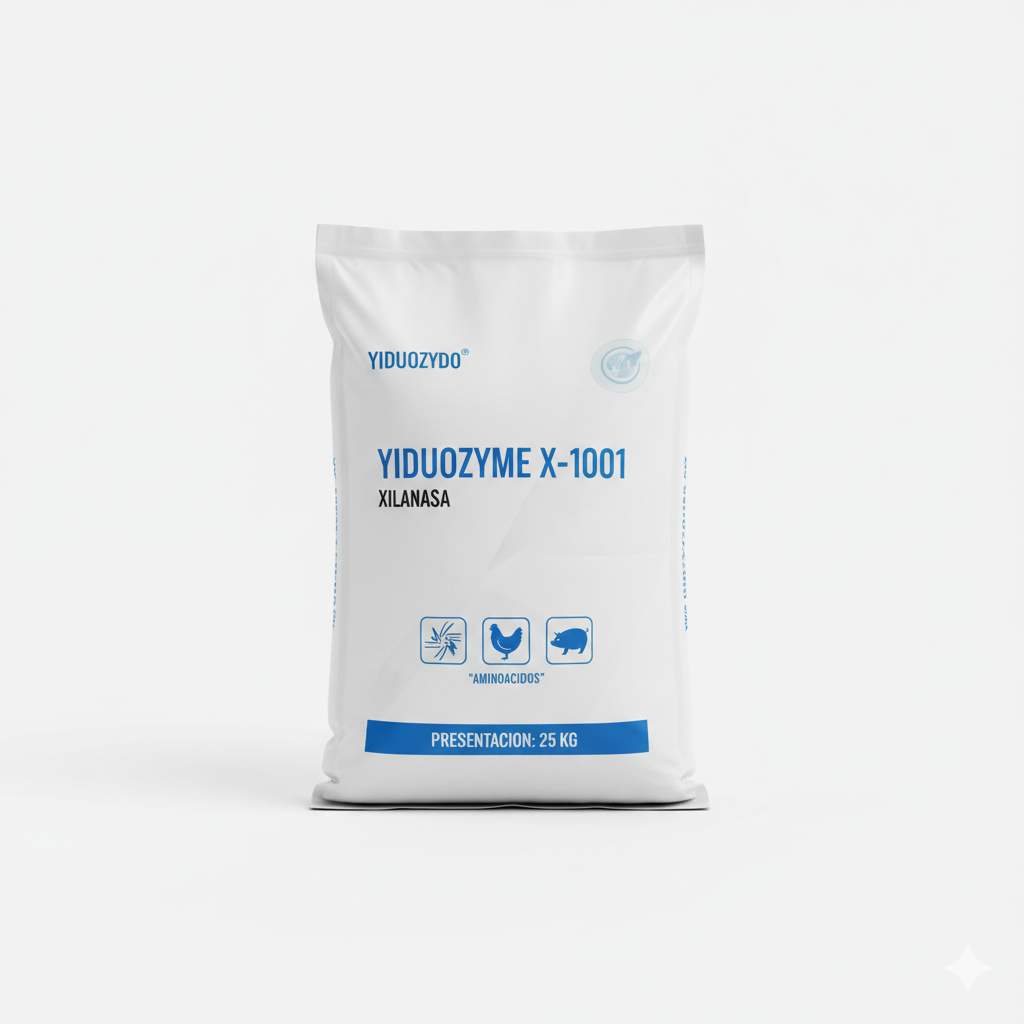 Enzima xilanasa que degrada xilanos y reduce factores antinutricionales del alimento. Mejora la digestibilidad y el rendimiento de crecimiento en aves y cerdos, complementando la deficiencia enzimática de animales jóvenes.