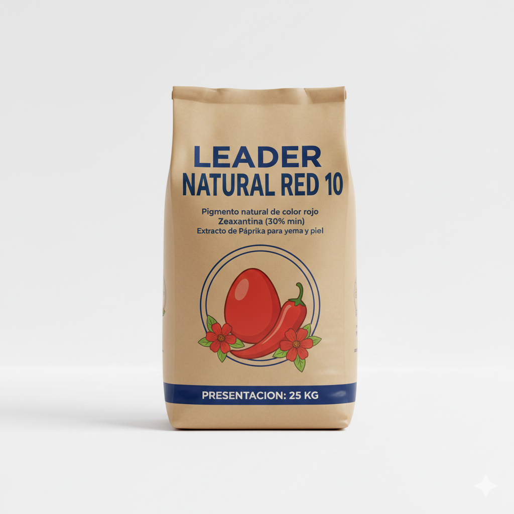 LEADER NATURAL RED 10 es un pigmento rojo natural obtenido del extracto saponificado de páprika. Potencia la coloración de la yema de huevo y la piel del pollo, logrando tonos rojo-anaranjados atractivos y uniformes. Combinado con xantofilas amarillas, optimiza el perfil de pigmentación en programas avícolas.