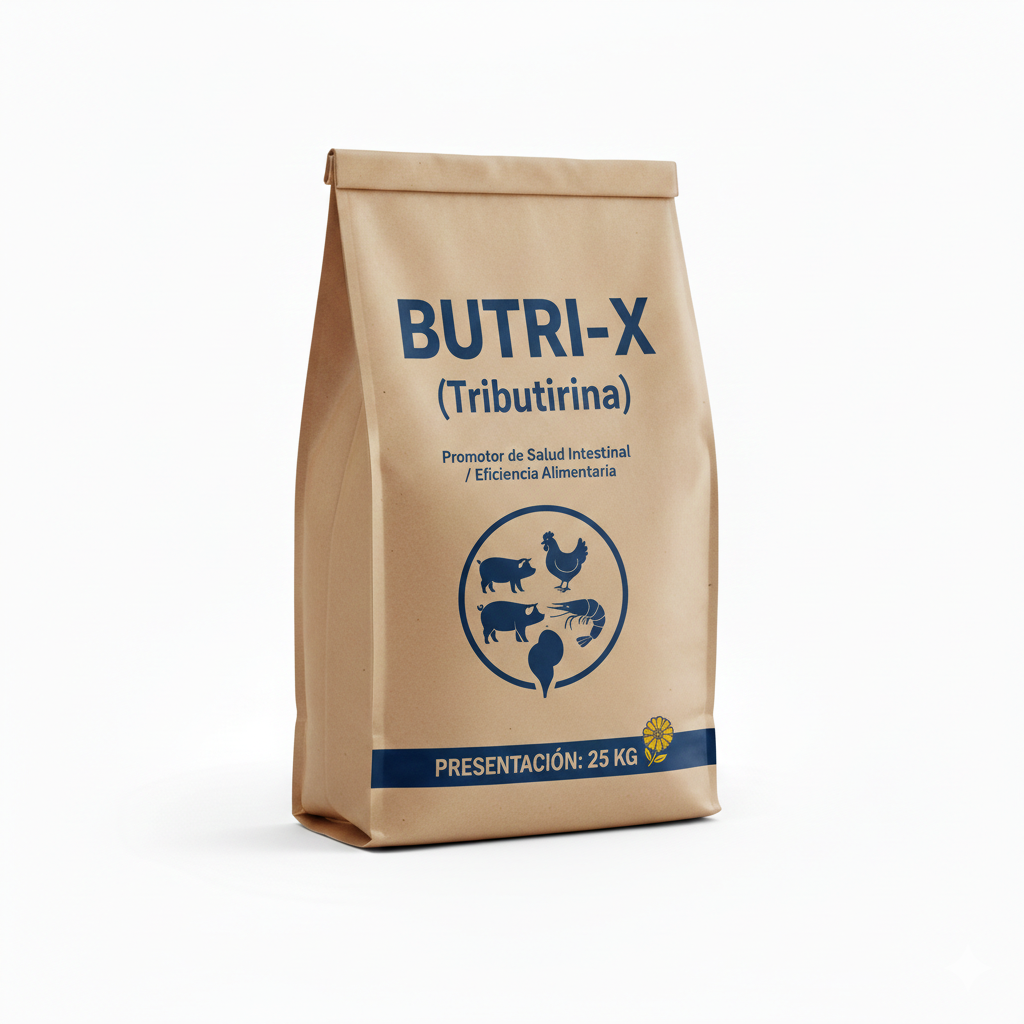 BUTRI-X es una fuente eficiente de ácido butírico que se libera en el intestino gracias a la acción de la lipasa. Promueve la salud intestinal, fortalece el sistema inmunitario y mejora la conversión alimenticia. Ideal para optimizar el rendimiento productivo en diferentes especies.
