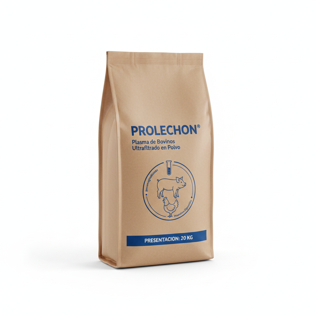 Plasma porcino en polvo rico en inmunoglobulinas y proteínas funcionales. Mejora la respuesta inmunitaria, la digestibilidad y la palatabilidad en dietas animales. Ideal para optimizar el desempeño productivo en etapas críticas.