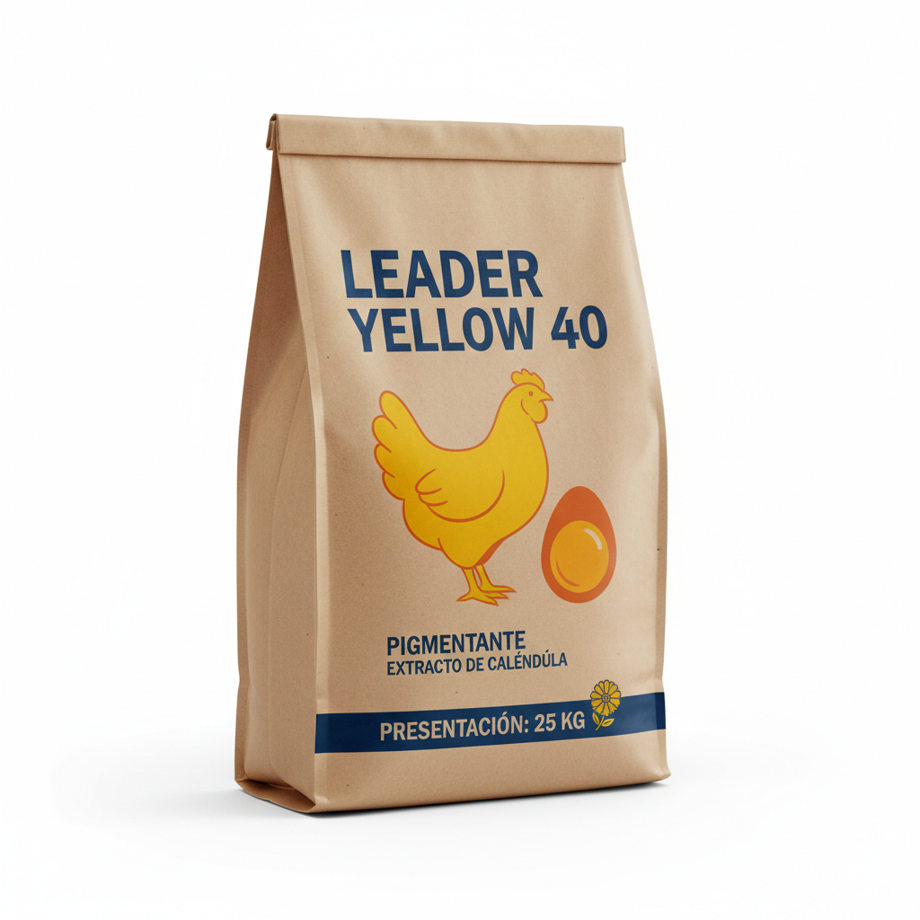 LEADER YELLOW 40 es una fuente estabilizada de xantofilas naturales provenientes de flor de caléndula (Tagetes erecta). Diseñado para la industria avícola, aporta una pigmentación uniforme y estable, logrando un color amarillo dorado en la piel del pollo y un tono amarillo-naranja intenso en la yema de huevo. Alta biodisponibilidad y resultados consistentes en programas de pigmentación.